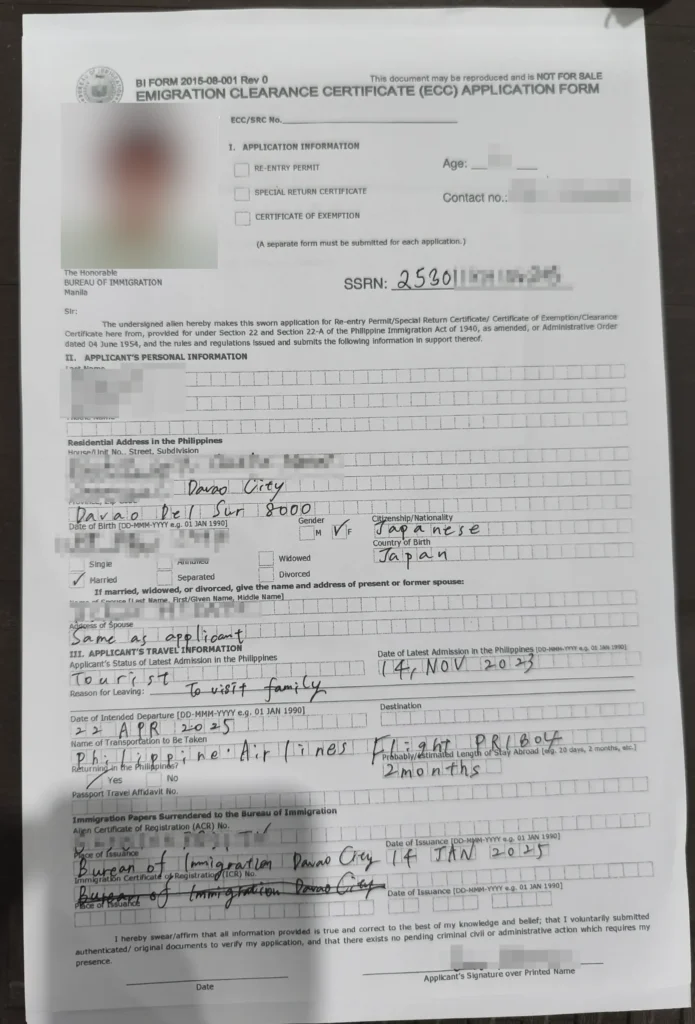 フィリピンに6か月以上滞在した場合、「出国許可証(ECC:Emigration Clearance Certificate)」が必要になります。