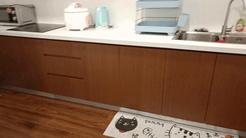 洗濯機やレンジなどの家電はもちろん、お皿などの細かいものまですべてそろっていて、何より綺麗!