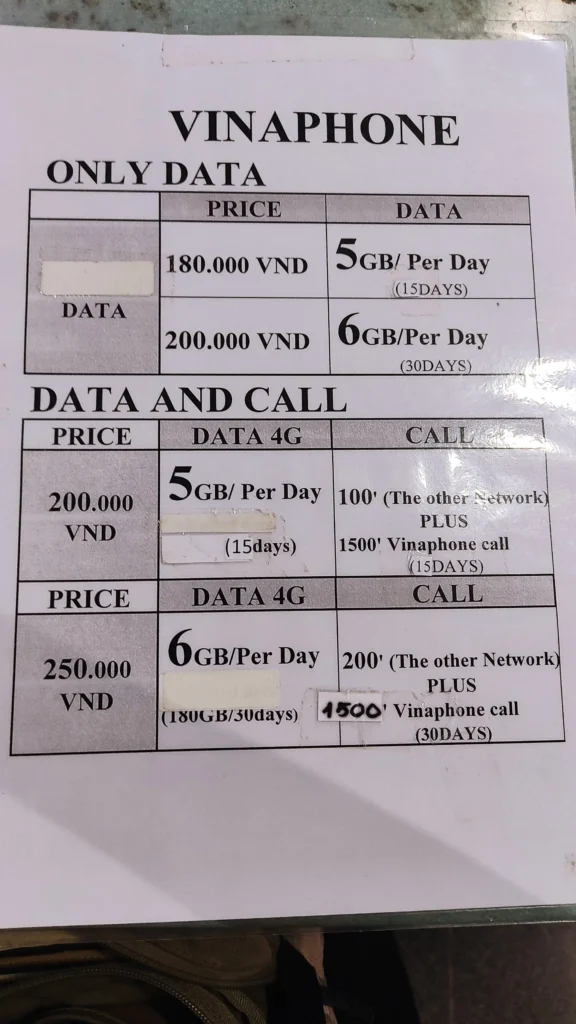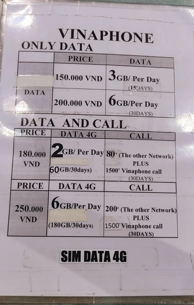 ベトナムに友人がいるわけでもないので、電話機能は要らないであろうと思ってデータのみのプランにしたのですが、電話機能ありにすればよかったと後悔することになりました。